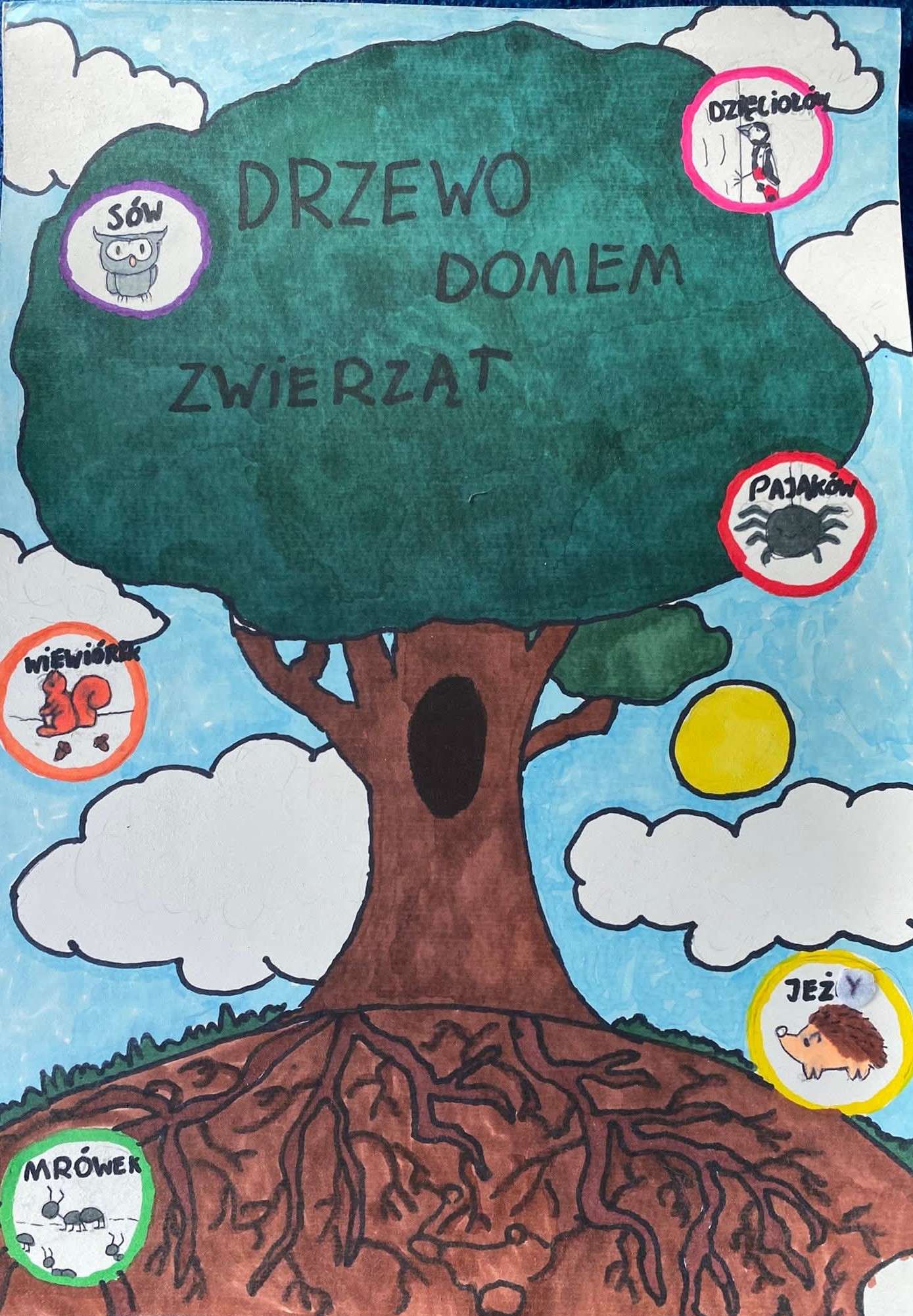 Z okazji "Dnia Drzewa" przeprowadziliśmy wiele zajęć przyrodniczych, plastycznych, literackich i ruchowych. Powstało wiele wspaniałych prac. Ustalaliśmy: co myślą drzewa? co czują? co widzą? kto jest ich przyjacielem? jak możemy im pomóc, aby były szczęśliwe?...